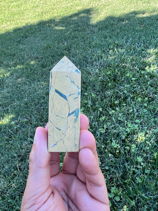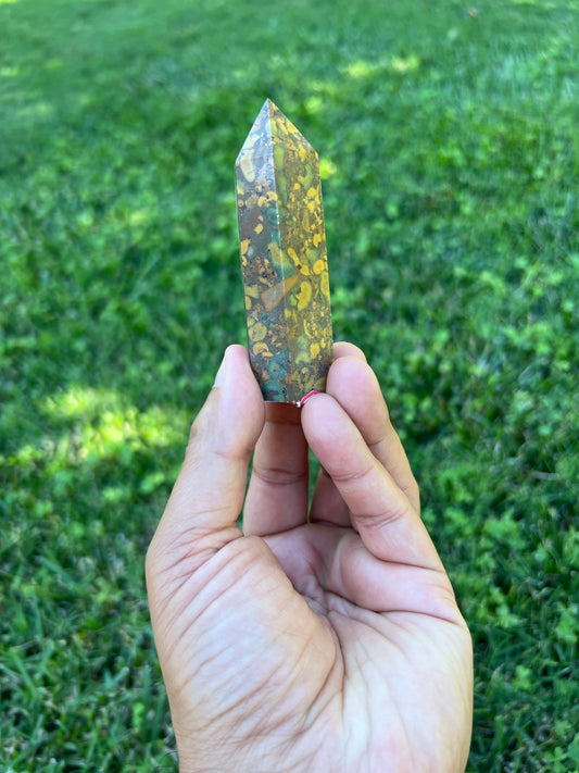 🌿 Connect with Nature's Energy with a Green Vein Jasper Tower! 🌿